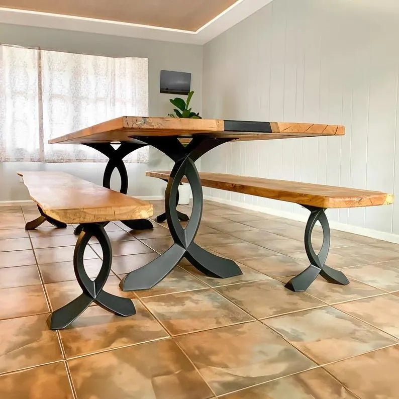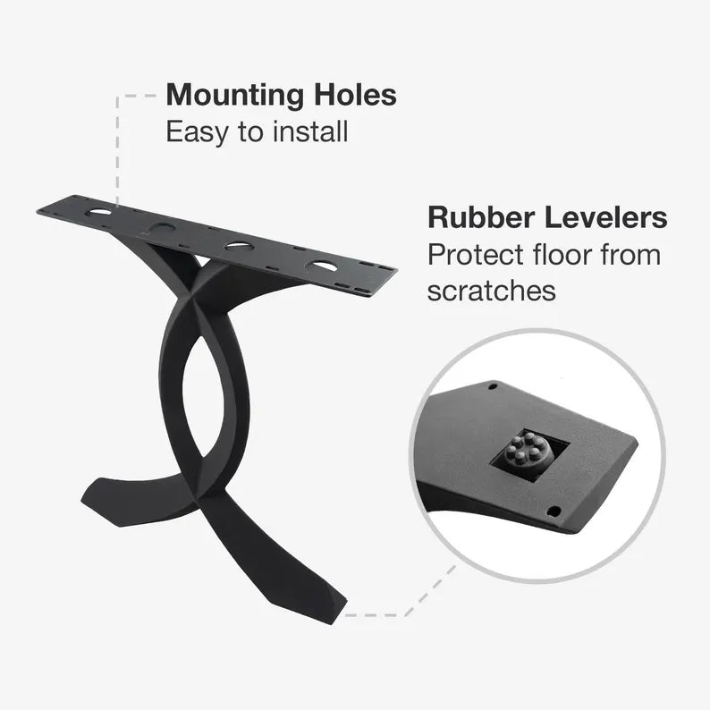 Metal Table Legs (set of 2 pcs), DIY Steel Furniture for Desk, Dining, Kitchen, Live Edge top - Flowyline Design 418 Curva